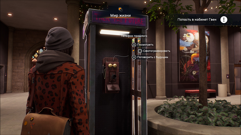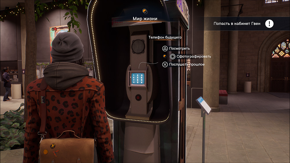 5)Глава 2, эпизод 2 «Бодливая корова» - Идем в факультет искусств и подходим к таксофону. Сначала записываем сообщение в будущее(со стороны кабинета Гвен), а после слушаем его(со стороны кабинета Лукаса)
