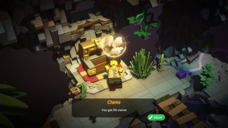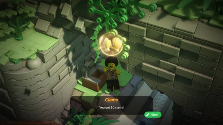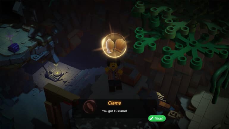 10 Clams – находятся во второй области, справа от корабля, с тем же маршрутом, что и предыдущий сундук. Используйте Dimension, чтобы открыть телепортационную панель, затем используйте Electricity, чтобы добраться до сундука.