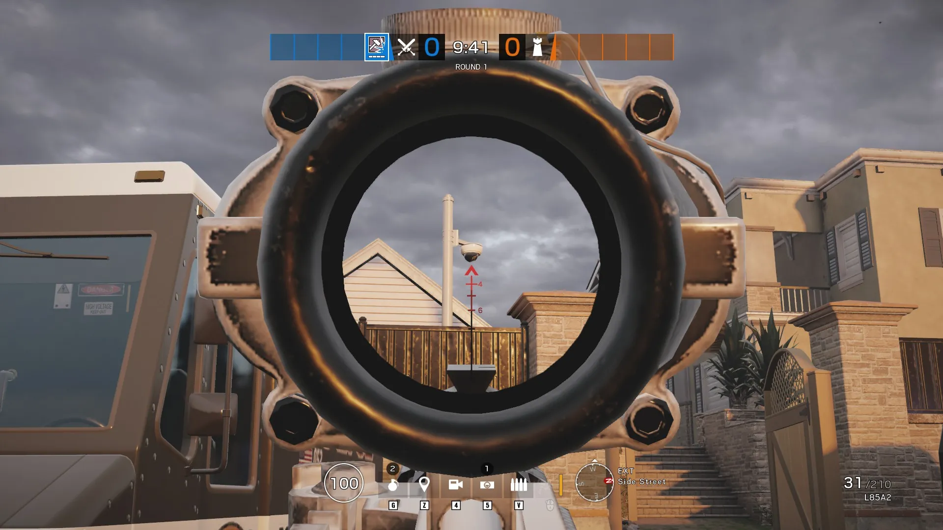 На улицах находятся от 2 до 4 камер. Как спавнитесь, просто осмотритесь и уничтожьте одну из таких. Камеры оперативника Valkyrie не идут в зачет. Также не считаются бронированные камеры.