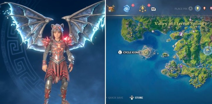 Крылья Икароса можно разблокировать, выполнив основной квест A Debt Repaid. Вам потребуется снова победить Божественного лейтенанта Грифона, чтобы оснастить себя этими крыльями. Ближайшая точка быстрого перемещения — Святилище Афины.