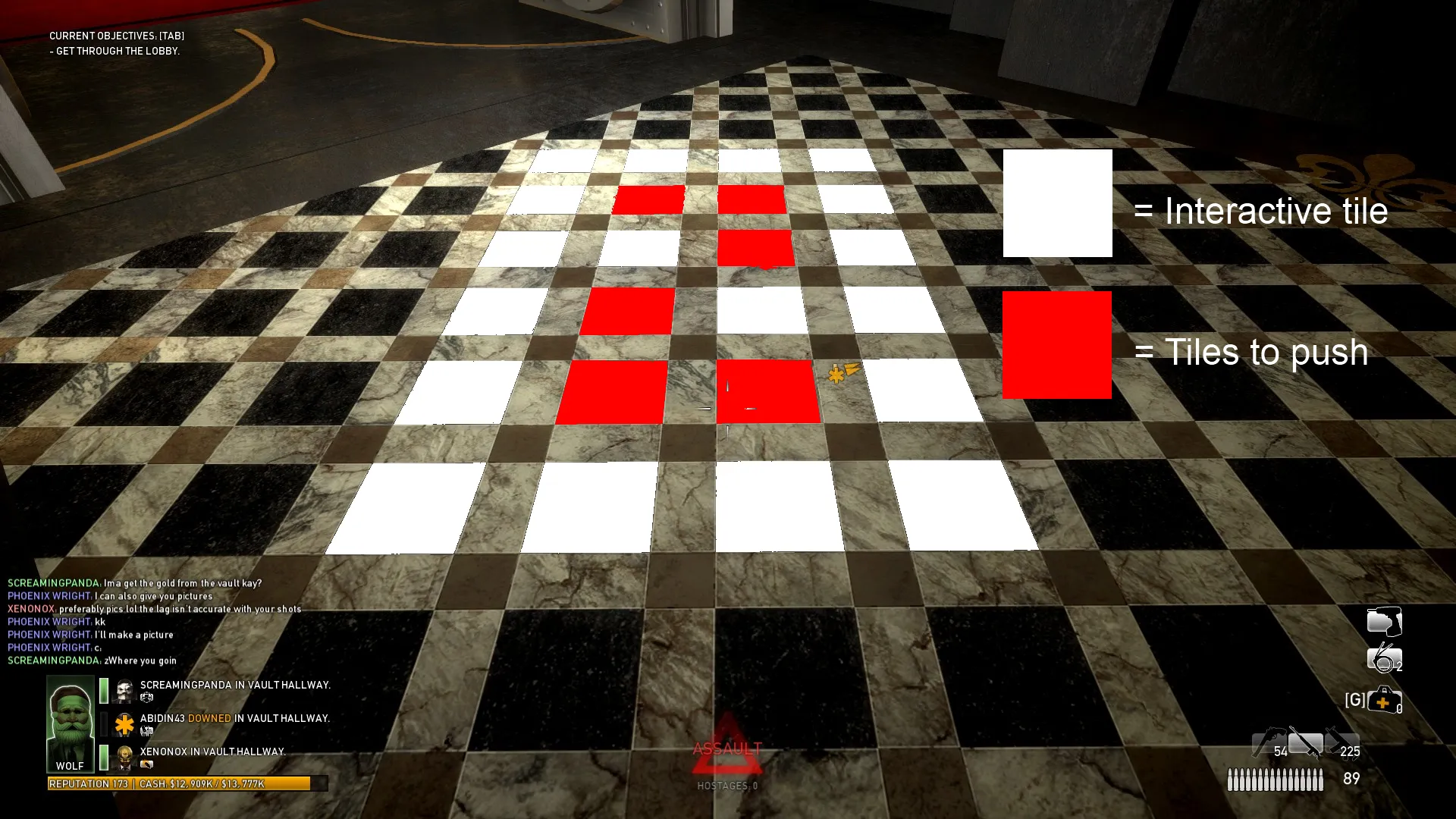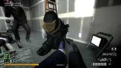 Условие 3. Один из ваших напарников должен быть в "custody" (заключение). Подойдет и обычный бот. Чтобы оказаться за решеткой, грабителю нужно упасть несколько раз подряд от пуль / падений с высоты, не использовав при этом большую аптечку, либо при падении на землю, никто не должен поднимать напарника в течении 30 секунд, тогда он автоматически попадет под стражу полиции. Если вы не понимаете, когда попадете в "custody" от падений, то посмотри на цвет экрана - если фильтр будет серым, то следующее падение станет последним и вы окажитесь под стражей, если же фильтра нет - продолжайте падать.