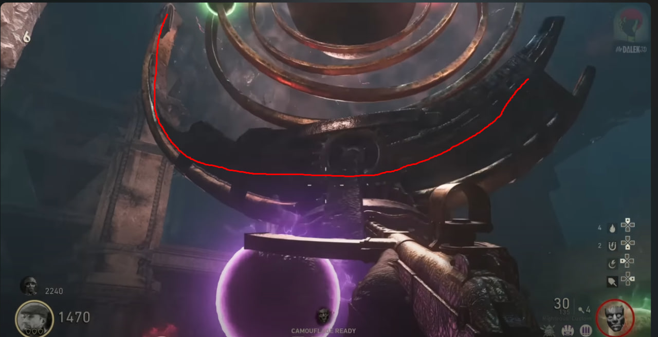 - Нужно убить полностью заряженного нового противника в этом бассейне, как можно ближе к центру, вызывать нового противника можно либо прокатившись на лифте, но тогда он придёт не заряженный, для зарядки ему нужно будет убить 6 обычных зомби, второй вариант - возле третьего бассейна есть ворон в которого можно стрельнуть, далее нужно находить воронов по всей карте и стрелять в них (это будут не статуи, а именно птицы), услышать их можно по карканью, сидят они обычно на столбах и возвышенностях. После выстрела в каждого ворона будет появляться новый противник уже заряженный, на ранних волнах изредка может появиться не заряженный противник. проще убивать этих противников с помощью щита, главное успеть убежать, так как эти противники после смерти взрываются и наносят очень много урона взрывом. В бассейне появится символ (его увидит только щитоносец), делаем тоже самое с оставшимися 2-мя бассейнами, но обязательно запоминаем порядок в котором вы убивали новых противников в бассейнах.