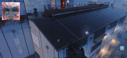 Залезаете на кран, который находится в юго-восточном углу карты (рядом со зданием, вокруг которого обозначена цель)