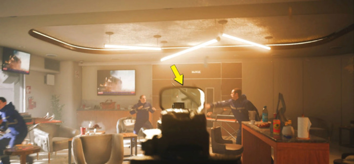 Когда пройдете в ВИП Зону, там окажутся врачи и попросят вас о помощи. Игнорируем это предложение и ждем. Самый задний справа медик начнет кидать автомат медику по середине, в это время нужно успеть выстрелить в летящий автомат