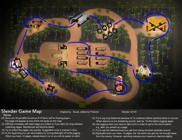 Карта возможного расположения листков, а также как лучше всего пробегать данную локацию.