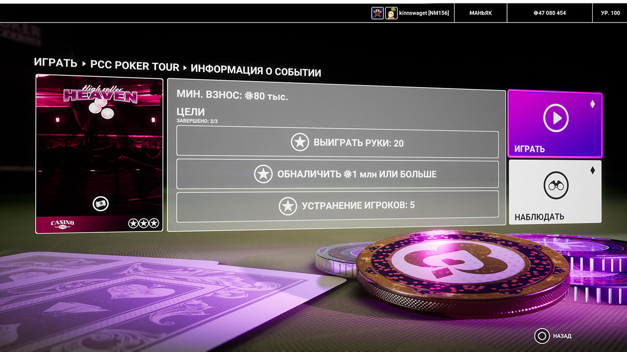 Завершите все цели в покерном турнире
