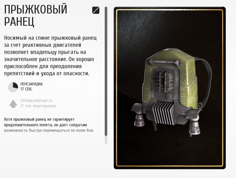Прыжковой ранец - это карта с улучшением, которую вы можете поставить к себе в снаряжение.