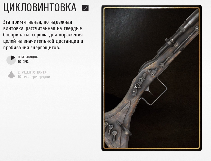 Цикловинтовка - это карта с улучшением, которую вы можете поставить к себе в снаряжение.