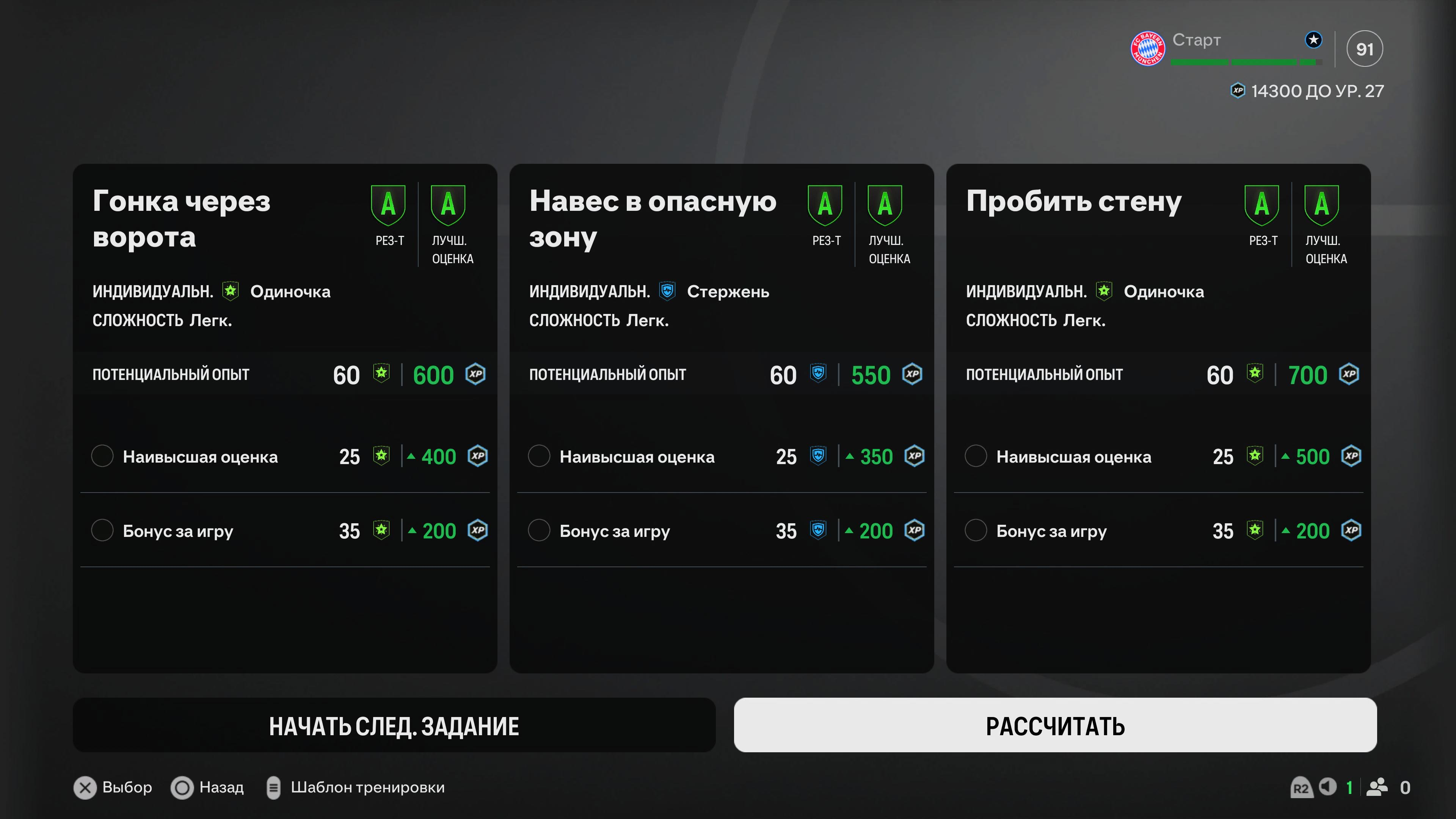 В задачах нужно распределить «Очки навыков» по своему усмотрению - я выбрал Скорость, Удары и Дриблинг.
