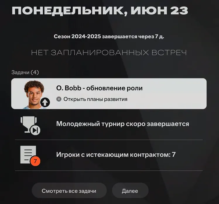 Выберите календарь и выполните симуляцию до 28 сентября 2024 года (предсезонный турнир не имеет значения)