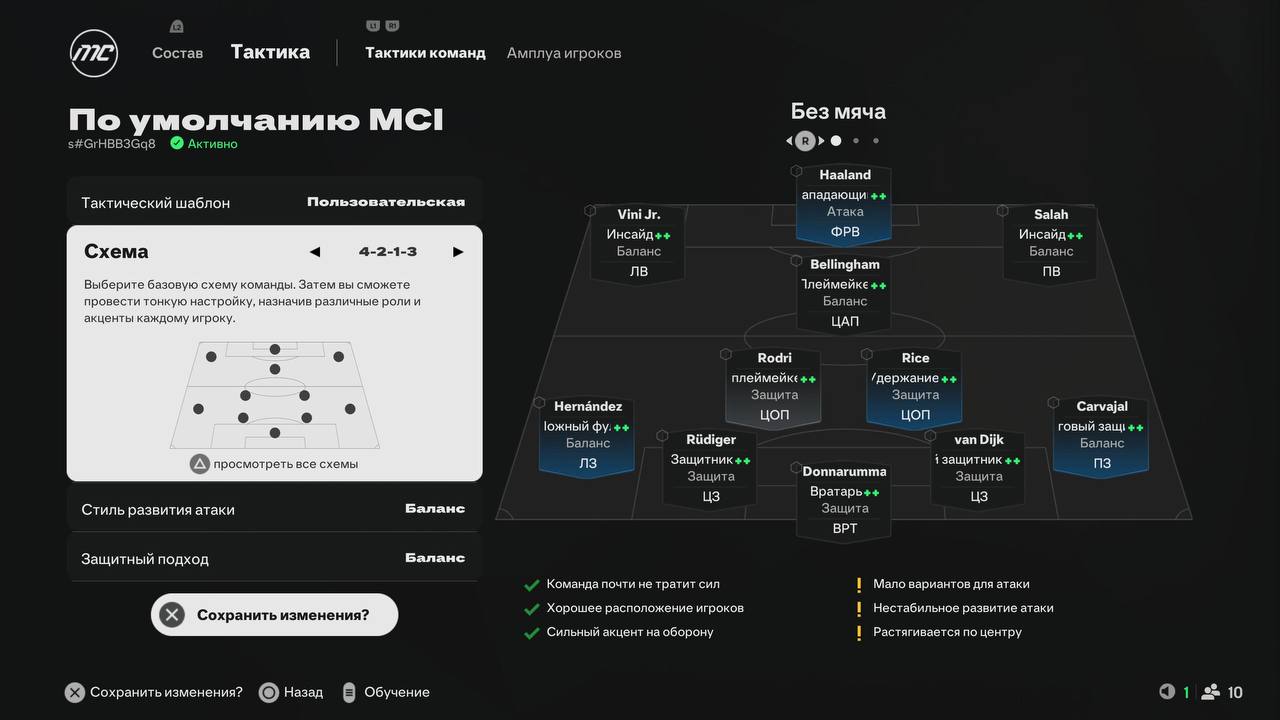 Теперь перейдите на вкладку Тактика, смените схему и выберите роли: