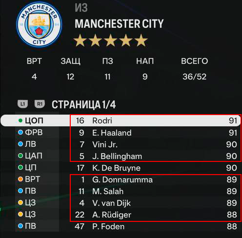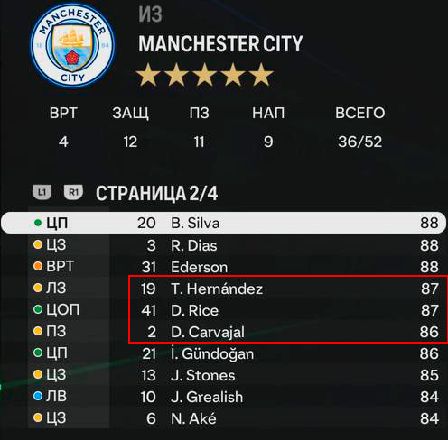 Выберите следующие команды и игроков и переведите их всех в «Манчестер Сити»: