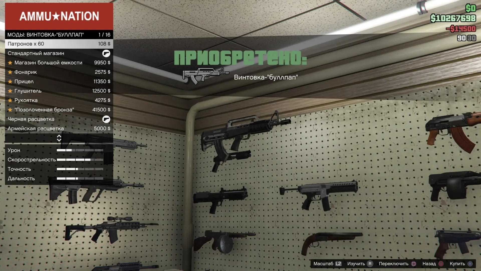Винтовка булпап. Её прикол в почти отсутствующей отдаче при зажиме. Проще ставить хедшоты.